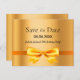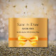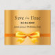 Elegant, klassisk, glamorös och feminin stil 50:e (eller någon ålder) födelsedagsfest spara vykortet för datum. Dekorerad med ett faux-färgad-band och en båge. Faux guld foil metallisk tittar bakgrund. Med texten: Spara datumet framför. Anpassa och lägg till datum och namn/text. Tips! Om du inte vill att det ska se ut som ett vykort klickar du på anpassa, går till baksidan och tar bort delaren och lägger till frimärke.