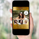 Skapa din egen unika fotokollage. Använda fyra, fyra av dina favoritfoton. Anpassa och lägg till information om namn och party. En faux guld tittar bakgrund, vit text.