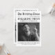 Gammaldags födelsedagsinbjudan i tidningsform med rubriker om festen, bilder genom åren och en textmall som är lätt att anpassa.