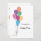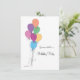 Inbjudan innehåller sju färgfulla ballonger på framsidan och tre färgstarka ballonger på baksidan.