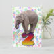 En roligt födelsedagsfest inbjudan för den kinkiga apan i din familj. En elefant från baby står på ett antal, och många siffror faller i bakgrunden. Baksidan har elefanter på skateboard.