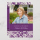 70th födelsedagsfest inbjudan för beställnings- foto i elegantt mörkt mönster för vintage för lila-, kräm- och vitklassiker blom- damastast. Tillfoga ditt namn, foto, och partyet specificerar för en unik och stilfull födelsedagsfest inbjudan.