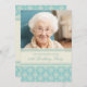 Tänder 85. födelsedagsfest inbjudan för det beställnings- fotoet i elegant - slösa turkos och laga mat med grädde det benvita klassikervintagemönster. Tillfoga ditt namn, foto, och partyet specificerar för en unik och stilfull födelsedagsfest inbjudan.