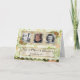 Födelsedagsfest inbjudan för shabby chicfoto 80th på grönt och blom- bakgrund för persika med tre foto.