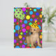 Bjud in Kids Girl eller Boy Birthday Event Grönt and Lila spot Balloons, multifärgade fläckar på Brown Labrador Puppy med Gult och Black Spot Party Hat.