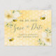 A Spara datumkortet för en 50:e (eller någon annan födelsedagsfest) sommar. Gult, vit bakgrund med en bikaka mönster. Dekoreras med lätt gult, grädda färgad tropiska blommigtar blommor, hibiscus och lycklig humla. Mallar för ett datum och namn/ålder 50. Grönt, grått färgad brev. Texten: Spara datumet skrivs med ett stort trendig-handskript i stil. Tips! Om du inte vill att det ska se ut som ett vykort klickar du på anpassa, går till baksidan och tar bort delaren och lägger till frimärke.