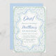 Födelsedagsfest med akvarellblå och salvia grön fö inbjudningar