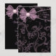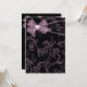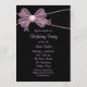 Svart och rosa virvelbakgrund med rosa rosett födelsedagsfest inbjudan. Anpassa framsidan och baksidan med ditt val av teckensnittsstil och teckensnittsfärg.