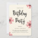 Chic och modernt födelsedagsfest inbjudan med snyggt typografi och söt blommigt inslag.