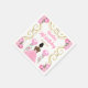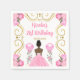 Den här födelsedagsinbjudan till napkin är en elegant guld ram, en vacker prinsessa med mörk hud och en rosa klänning, blommor och ballong. Det här är perfekt för en födelsedagsfest.