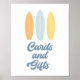 Visa vänner och familj var de ska lämna sina kort och presenter med detta tecken, med färgstarka vattenfärgade surfbrädor.