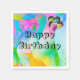 Lustigt folk ballonger med Grattis på födelsedagen text om rosa, akva, blått, grönt, orange, lila och gult - abstrakt utformning. Text kan ändras eller tas bort.