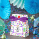 Födelsedag med gåvor, muffinsar, kandiser, ballonger och noisemakrar. Så här anpassar du redigeringstexten för att lägga till namn.