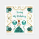 Den här födelsedagsinbjudan till napkin är en elegant guld ram, en vacker prinsessa med rött hår och en tealblå klänning, blommor och ballong. Det här är perfekt för en födelsedagsfest.