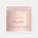 En kapkin för en gigantisk och glamorös 50:e (eller någon ålder) födelsedagsfest. En faux ro guld-metallisk bakgrund tittar med elegant faux ro glitter drops, målardropputseende. Texten: namn är skrivet i mörk ro guld med ett stort modernt, handskript i stil. Mall för namn, ålder 50 och datum.