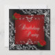 Födelsedagsfest Röd ros Silver Blommigt Black Inbjudningar