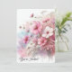 En bukett med rosa cosmos och baby utandning presenteras mot en mjuk bakgrund med pastellbakgrund med färgad och en drömmande vattenfärgeffekt All text är redigerbar.