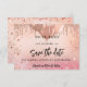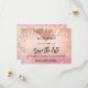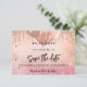 Ett giftigt och trendig Spara datumkortet för en 18:e (eller någon ålder) födelsedagsfest. En rosa, övertoningsbakgrund för ro guld, dekorerad med faux glitter, gnistor och ballonger. Anpassa och lägg till datum och namn/ålder. Texten: Spara datumet skrivs med ett stort trendig-handskript i stil.