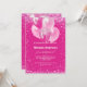 En shock rosa bakgrund. Dekorerad med rosa konetti och ballonger. Vit text. Anpassa och lägg till information om namn och party.