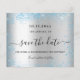 Observera att det här Spara datumet är pappert och mycket tunt. Kuvert ingår inte. Om du vill ha ett tjockare Spara datumkortet (samma design) kan du besöka vår butik. Ett giftigt och trendig Spara datum för en 18:e (eller någon annan ålder) födelsedagsfest. En faux silver tittar bakgrund som dekorerats med blått faux glitter stoft. Anpassa och lägg till datum och namn/ålder. Texten: Spara datumet skrivs med ett stort trendig-handskript i stil.