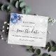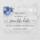 Observera att det här Spara datumet är pappert och mycket tunt. Kuvert ingår inte. Om du vill ha ett tjockare Spara datumkortet (samma design) kan du besöka vår butik. Ett giftigt och trendig Spara datum för en 50:e (eller någon annan ålder) födelsedagsfest. En klassisk faux-metallisk tittar i silver, som dekoreras med faux-glitter damm och blåa blommor. Anpassa och lägg till datum och namn/ålder. Texten: Spara datumet skrivs med ett stort trendig-handskript i stil.