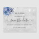 Ett Spara datum magneter-kort för girighet och trendig för en 50:e (eller någon ålder) födelsedagsfest. En klassisk faux-metallisk tittar i silver som dekoreras med faux silver glitter, sparkler och blåa blommor. Anpassa och lägg till datum och namn/ålder. Texten: Spara datumet skrivs med ett stort trendig-handskript i stil.