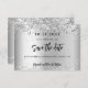En elegant Spara datumkortet i en 40:e (eller någon annan ålder) födelsedagsfest. En modern faux silver tittar bakgrund som dekorerats med konetti. Anpassa och lägg till datum och namn/ålder 40. Texten: Spara datumet skrivs med ett stort trendig-handskript i stil.