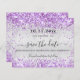 Ett giftigt och trendig Spara datum för en 40:e (eller någon annan ålder) födelsedagsfest. En modern faux silver tittar bakgrund som dekoreras med violett, lavender färgad faux glitter-gnistor. Anpassa och lägg till datum och namn/ålder 40. Texten: Spara datumet skrivs med ett stort trendig-handskript i stil.