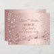 S Spara datumkortet för en giftig 50:e (eller någon annan ålder) födelsedagsfest. Framtill: Ro guld faux metallisk tittar bakgrund dekorerad med faux diamant sprinkle och ro guld musik noter. Mallar för namn och datum. Mörk ro guld färgad brev. Namn och texten: Spara datumet är skrivna med ett modernt handskript i stil. Tillbaka: Information om party, bakgrund och text för färgaden ro guld.