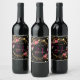 Födelsedagsfest svarta stjärnor burgundi blommigt vinflaska etikett