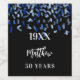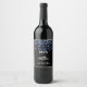 En vin-etikett för en 50:e (eller någon ålder) födelsedagsfest. En svart bakgrund med blå konfetti. Anpassa och tillsätt födelseår, namn och ålder. Namn är skrivet med ett elegant-handskript i stil.