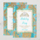 Födelsedagsfest Tealblå Guld Damaskusgrå Tiara Inbjudningar
