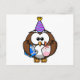Har du en födelsedagsfest? Du borde inbjudan den söta födelsedagen uggla! Han har en stark lila och blå party hatt och har redan en present till dig. Han tog till och med med med en underbar rosa tårta! Det här söta uggla är redo till party!