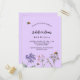 En violett, lavender färgad bakgrund. Dekorerad med bin och målade vilda blommor i violett och rosa. Anpassa och lägg till information om namn och party.