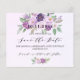 En modern och elegant Spara datum för en milstolpe på födelsedagen. Vattenskärkta violett, lavendelbakgrund, svart text. Dekorerad med violett och lila blommor. Anpassa och lägg till ett datum och namn. Texten: Spara datumet skrivs med ett stort trendig-handskript i stil. 1 lakan = 1 spara datumet som skrivs ut kant till kant.