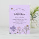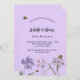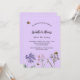 En violett, lavender färgad bakgrund. Dekorerad med bin och målade vilda blommor i violett och rosa. Anpassa och lägg till information om namn och party.