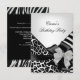 Födelsedagsfest Zebra Leopard Elegant Black white Inbjudningar