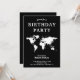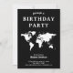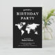 Födelsedagsfesten Black and White World Map Inbjudningar