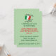Födelsedagsfest inbjudan med det italienska flagga och ord FLÖDET AV ITALIEN GENOM MINA VEINÄRER OCH IBLAND GENOM VIN. Bakgrunden är ljust grönt. Party på framsidan kan vara personlig. Tillbaka är tomt för det speciella meddelande, den riktning eller den spelar ingen roll du vill ha.