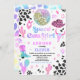 Cosmic Space Cowgirl Disco Rodeo Födelsedagsfest inbjudan Alla utformningar är © PIXEL PERFECTION PARTY LTD