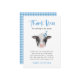 Rustic barn födelsedagsfest tackar dig för ett kort med en vattenfärgad illustration av baby ko med blå party hatt. I standardtexten tackar man gästerna för att de kommit till party och för presenterna. I texten står det: "Tack för att ni kom till min party!"