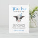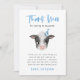Rustic barn födelsedagsfest tackar dig för ett kort med en vattenfärgad illustration av baby ko med blå party hatt. I standardtexten tackar man gästerna för att de kommit till party och för presenterna. I texten står det: "Tack för att ni kom till min party!"