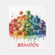 En levande och lekfull illustration av flerfärgade byggnader i leksak som brinner uppåt i en dynamisk stapel. Varje block målas i en vattenfärg stil med ett fullt av regnbåge av färg, inklusive rött, orange, gult, grönt, blått och lila. Bakgrunden är vit, med färgfulla färgdroppar och stänk i botten, vilket tillför konstnärligt fläkt. Perfekt för en pojkes tema för födelsedagsfest centrerad kring kreativitet eller konstruktion.