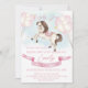Hästmatad födelsedagsinbjudan med illustration av en underbar baby-häst och Watercolor-saga guld-stjärnor med pastellfärgade ballonger och pinky-band för firande!