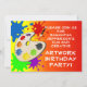 Fira en födelsedagsfest eller en speciell händelse, eller visa kreativet sida vid sida med den här söta, ljusa och färgstarka konsthalatdesignen. Orange och röd bakgrund med en konstnärs färgpalat med orange, rött, blått, grönt och lila stänk av färg. Underbar för en konststudio eller för att spela för barn för födelsedagsfest av kaféer, barn eller bara speciella kreativ och hantverksevenemang för lärare i skolan. All design Copyright © www.CustomInvitesOnline.com Denna design är tillgänglig som en fullständig samling!
