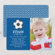 Denna enkla men mycket roligt födelsedagsfest inbjudan illustrerar en fotboll som lägger på perfekten för din lilla nästkommande idrottsteman födelsedagsfest.