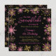 Den här eleganten och den glamorösa inbjudan har vattenfärgen guld och rosa faux glitter snöflingor och gnistor mot svart bakgrund. Det är perfekt för en födelsedagsfest under vintern eller julhelgen.