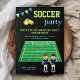 Inbjudan dina gäster med den här coolan, födelsedagsfest inbjudan, med söta pojkar på en fotboll fält mot en bakgrund av en schalkboard. Lägg bara till din händelseinformation i den här mallen som är enkel att använda för att göra den till en inbjudan av typen en. Vänd över kortet för att visa en vacker grönt gräs struktur på baksidan av kortet.