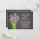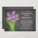 Starta din födelsedagsfest av höger med vår söt buquet av tulips-parbjudan med en contemporary av lila tulip-blommor på en kritersbakgrund. Vänd vår blommigt blomma födelsedagsfest för vuxnor om du vill hitta en matchande kalkylbräda för en speciell beröring i extra! Finns i vår butik i flera olika val av tulpaner färg. Perfektens val för en 21:a födelsedag, 30års födelsedag, 40:e födelsedag, 50:e födelsedag.