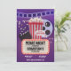 Filmkvällsbarnen födelsedagsfest inbjudan har ett skrivbord, en popcorn-hink, sträng ljus, ett biljett, en filmrulle och en filmremsa. Baksidan av inbjudan har en lila bakgrund som visar ljus i en ljusnande sträng. Den här designen är perfekt för en omgivande filmkväll eller en händelse på filmteatern. Den här designen kostym oavsett gender eller ålder. Du kan anpassa all information för evenemanget. Se hela matchningssamlingen!